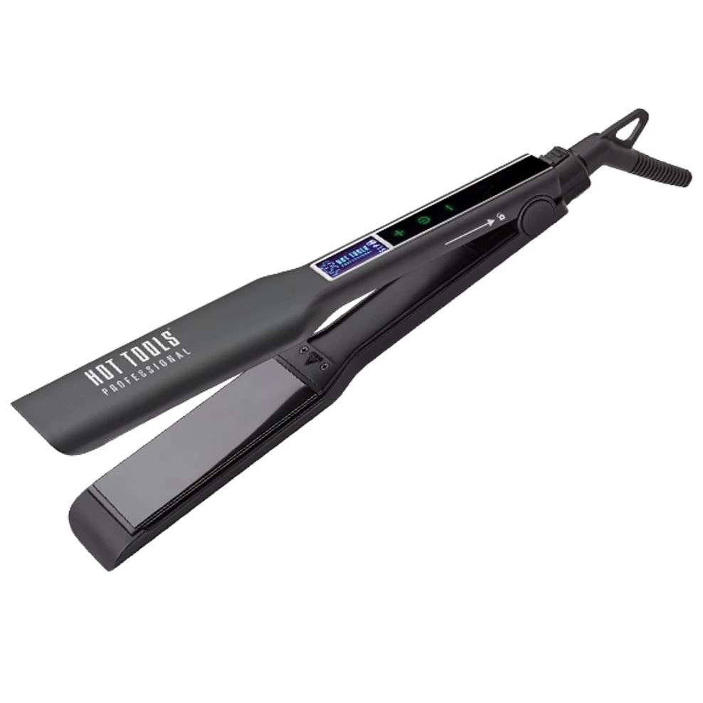 Hot Tools introduces the 1 ½” Salon Flat Iron with Smart Touch Technology featuring innovative swipe touch digital power and heat controls. This iron also features wider and longer floating plates for faster styling. Pulse Technology offers lightning fast heat-up for Gets Hot…Stays Hot performance and one-pass straightening. The Titanium MicroShine styling surface creates frizz-free, smooth, shiny styles. Other features include: 2-Hour Auto Shut-off, Universal Dual Voltage, LCD Temperature Display, Plate-locking Switch, and an 8-ft. Professional Swivel Cord. A one-year warranty is standard.