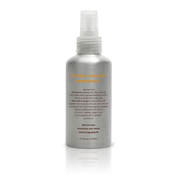 Mixed Chicks replenishing-oil is derived from all natural essential oils. This calming and delicately scented healing potion will rejuvenate and moisturize your skin, hair, & scalp.